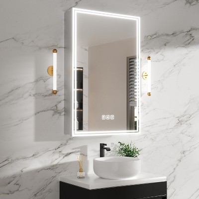 FAMYYT Rectangular Aluminum Medicine Cabinet with Mirror and Light, Dimmable, Anti-fog, Fully Assembled