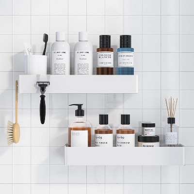 - white shower caddy