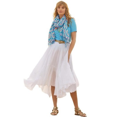 LEVEN SIXTEEN Women's Flowy Handkerchief Hem Midi Skirt - Asymmetric Boho Chic A-Line Skirt Blue