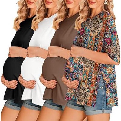 Ekouaer 4 Packs Women’s Maternity Shirts Short Sleeve Split Side Pregnancy Tee Tops Tunic Blouse Mama Clothes