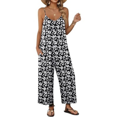 Ekouaer Womens Causal Sleeveless Jumpsuits Summer Boho Wide Leg Floral Rompers Overalls with Pockets