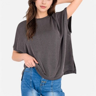Anna-Kaci Women's Oversized Knit Pullover Top with Side Slits and Ribbed Texture