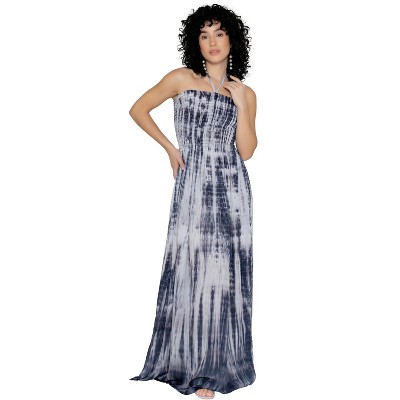 LA LEELA Women's House Daily Routine Evening Wear Boho A line Smocked Dresses Evening Long Tube Top Slit Maxi Dress for Women