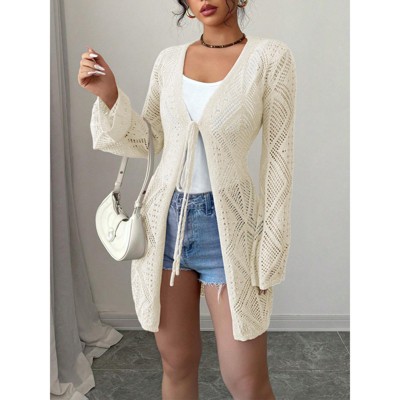 Womens Open Front Knit Sheer Cardigans Summer Boho Lightweight Long Sleeve Long Sweater
