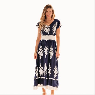 Boho Chic Embroidered Maxi Dress with Tassel Trim - Cupshe