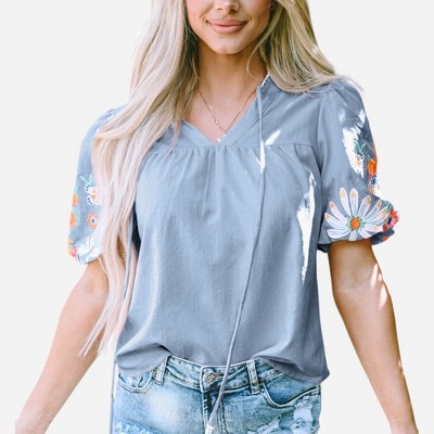 Women's Boho Tie Neck Blouse Shirt - LASCANA