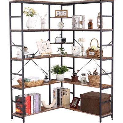 5 Shelf Arched Bookshelf Bookcase Tall Bookcase Farmhouse Display Storage Rack Wooden Bookshelves
