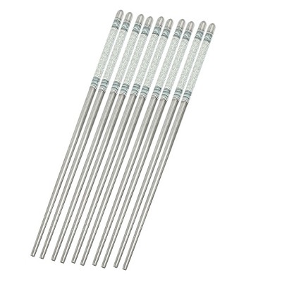 Unique Bargains Floral Pattern Stainless Steel Chopsticks 8.9" x 0.24" 5 Pairs