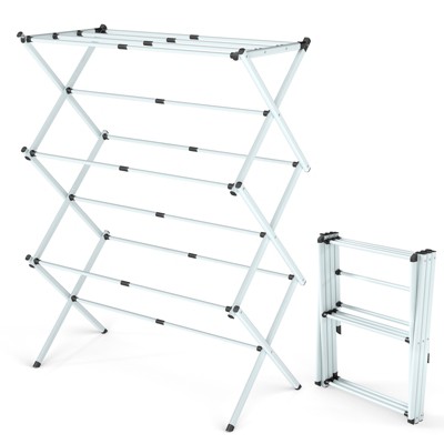 SUGIFT Folding Clothes Drying Rack,Adjustable Height,Silver