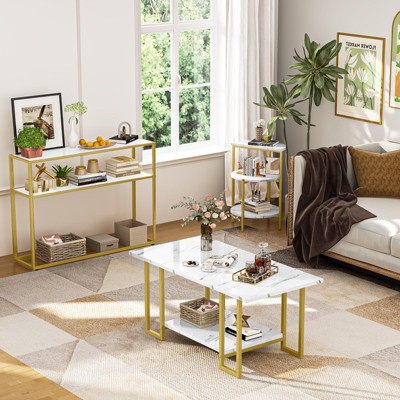 Metal Frame Wood 3-Piece Coffee Table Set