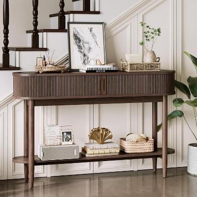 A console table or sofa table is a highly versatile and functional piece of furniture. It can be placed in any room with endless adaptability. You can use it to fill an empty space or to accent your decor. The right console in the right place can make all the difference. At Target, you’ll find a wide range of console tables or sofa tables that meet your need. If you’re finding it difficult to choose the right console then here are some tips that’ll help you choose. First, you need to decide where you want to use your console table? In the living room or entryway or behind the sofa? This helps you narrow down the size of the table. Next comes, the type. There are traditional tables that are made of wood. They can have a minimal finish or decorated with intricate designs. You can opt for modern or contemporary tables that are both functional and aesthetically pleasing. There are also other styles like rustic and vintage for you to choose from with storage features and different colors. Browse through our store and find the table that uplifts your space.