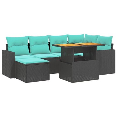 vidaXL 11 Piece Patio Sofa Set with Cushions Black Poly Rattan