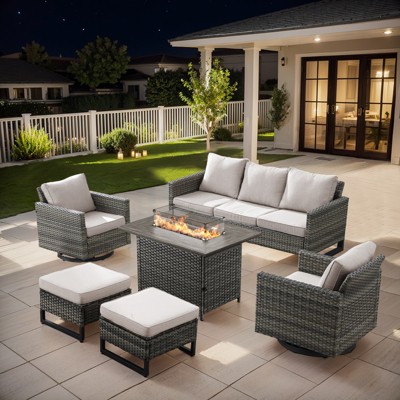 If you love the idea of a centerpiece for evening gatherings, consider patio conversation sets with fire pit tables. These combine cozy seating with a functional fire element, creating a warm and stylish hub for roasting marshmallows or sipping cocktails under the stars. For added movement and comfort, swivel chairs or rocking chairs are a modern favorite, blending relaxation with convenience.