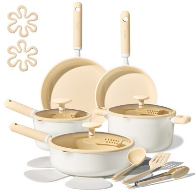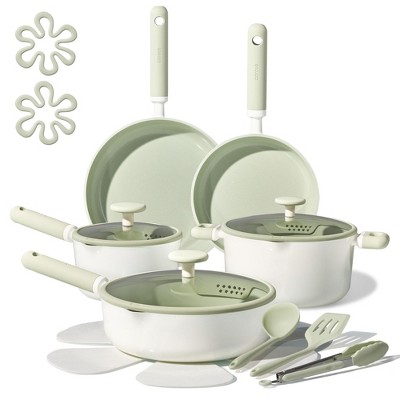 Are you looking to spruce up your kitchenware? Explore the complete kitchen essentials range with attractive cookware sets available at Target. Whether you’re moving to a new dorm or a new house, our versatile cookware sets will make your kitchen chores a breeze. We have everything from nonstick frying pans and saucepans to hard-anodized cookware sets that fit right in with your kitchenware. Wondering how you can save some space with your cookware? Our stainless steel space saving sets save up to 30% more cabinet space. With Induction cooktop compatibility, our cookware sets are designed to make your life easy. Do you wish to add a splash of color to your cookware sets? Go for bright red to bring an aesthetic touch to your cookware. Choose hues of blue for a soothing vibe to your kitchenware. Our dishwasher-safe cookware sets are easy to clean and maintain so that you don’t spend a lot of time in the kitchen.