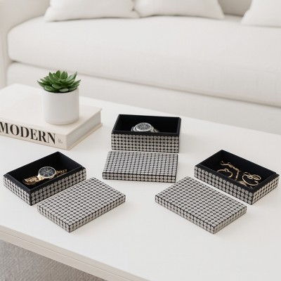 Modern Decorative Boxes for Home Decor - Jewelry Boxes and Storage Boxes with Lid for Keepsakes and Accessories - Set of 2 - 6" Black & White