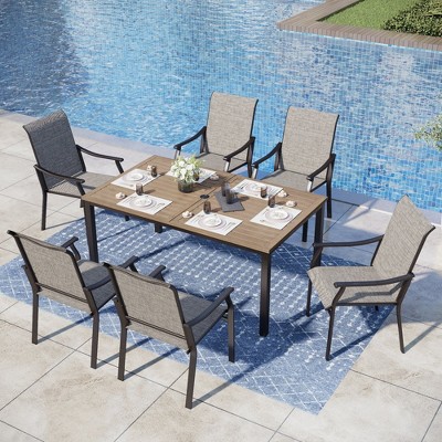 Captiva Designs 7pc Patio Dining Set with Slat-top Rectangle Steel Table & Metal Chairs