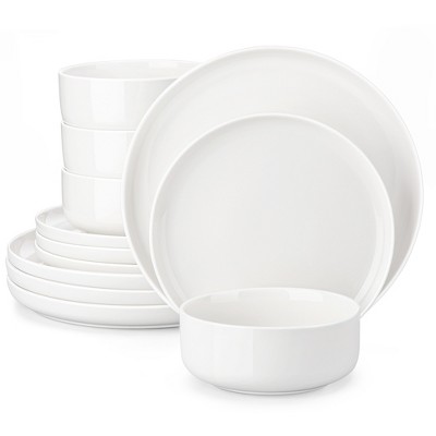Gibson Home Zen Buffetware Versatile 12 Piece Square Dinnerware Dish Set with Multi Sized Plates, Bowls, and Mugs, White (2 Pack)