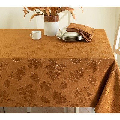 Elrene Elegant Woven Leaves Jacquard Damask Fall Tablecloth - Elrene Home Fashions