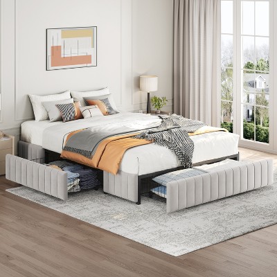 Yaheetech Upholstered Bed Frame Without Headboard With 4 Storage Drawers