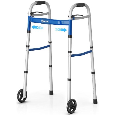 WHLICKS Narrow Folding Walkers for Seniors, Aluminum Lightweight Walkers, Adjustable Width and Height Front Wheel Walker for Elderly and Disabled