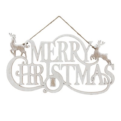 Transpac MDF Merry Christmas Wall Art White Wood Indoor Decor Holiday Cheer Gift for Hostess Celebrate the Season