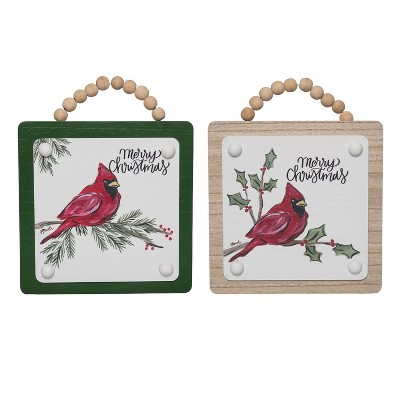 Transpac MDF Cardinal Plaque Bead Hanger Set of 2 Christmas Wall Art Indoor Decoration Multicolor Gift for Hostess