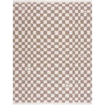 Hauteloom Kieu Taupe Checkered Shag Rug