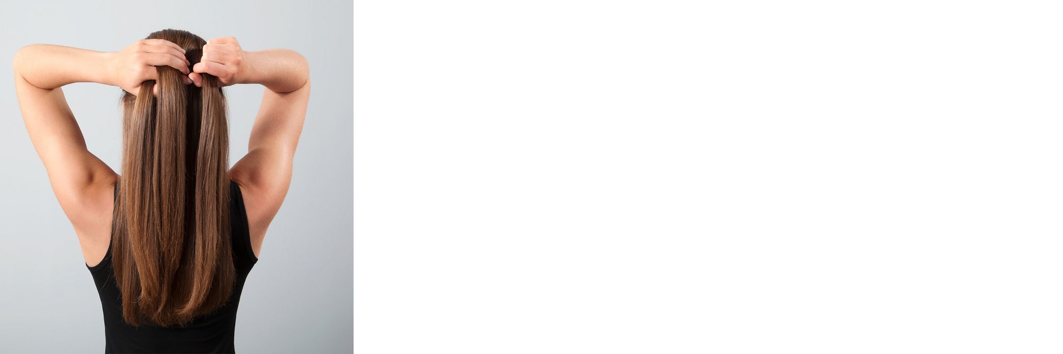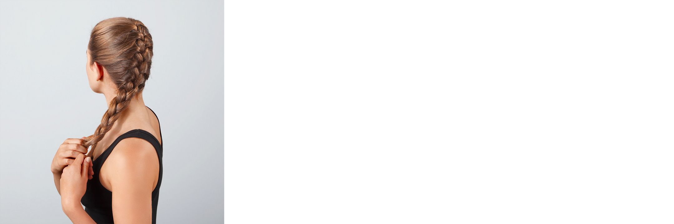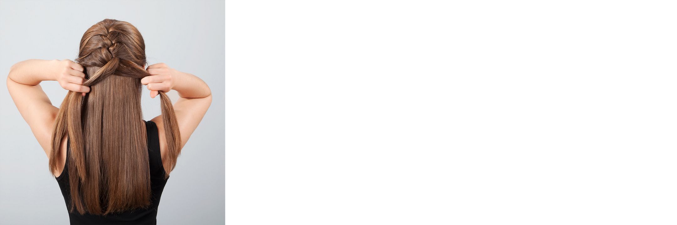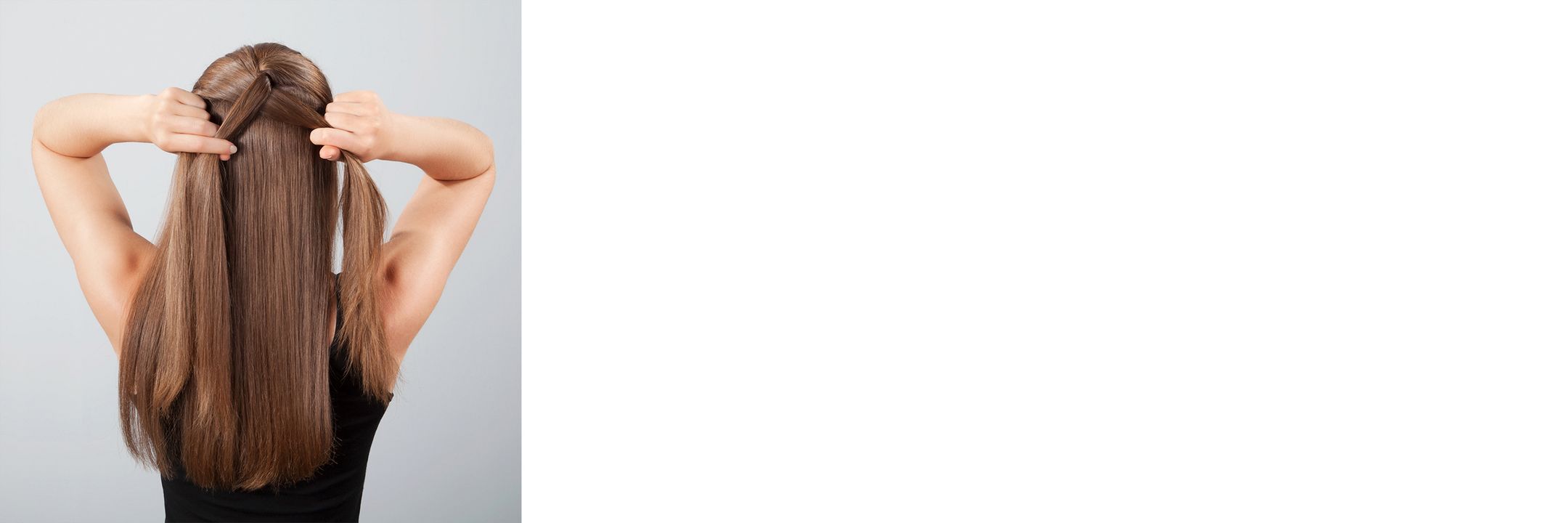 Ready, set, separate! Gently gather the hair at the top of your head into one hand. Make sure it’s centered, then separate it into three equal sections. You’re off to a great start. Tip: Hold each section between your fingers to keep them apart.