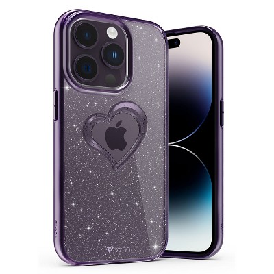 Vena vLove For Apple iPhone 14 Pro Max Case Heart, Heart Shape Design (MagSafe Compatible) Dual Layer Slim Hybrid Bumper Case Cover, Purple Marble