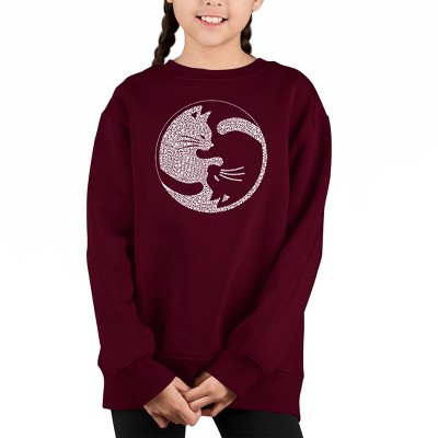 LA Pop Art Yin Yang Cat - Girl's Word Art Crewneck Sweatshirt