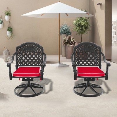 Outdoor Cast Aluminum Swivel Chair, 360° Swivel Function, with Red Cushion