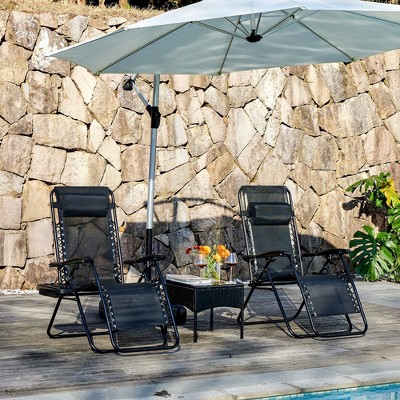 JIONJOY Folding Zero Gravity Metal Steel Outdoor Patio Sling Chaise Lounge Chair with Headrest (Set of 2)