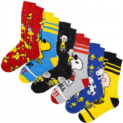 Mens Charlie Brown Snoopy and Woodstock 6-Pack Crew Socks