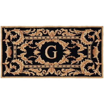 Monogram MON219 Hand Hooked Outdoor Door Mat - Black - 2'6"x4' - Safavieh