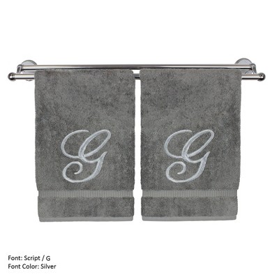 BC BARE COTTON Monogrammed Hand Towel, 100% Turkish Cotton - Set of 2 - Gray - Silver Script