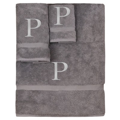 BC BARE COTTON Monogrammed Towel Set, Personalized Gift, Set of 3 - Gray - Silver Block