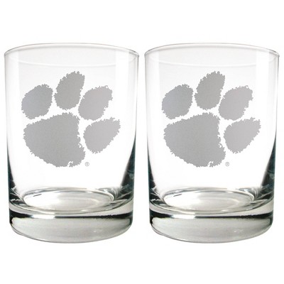 NCAA Clemson Tigers Laser Etched Rocks Glass Set - 2pc: 12oz Glassware Gift Set