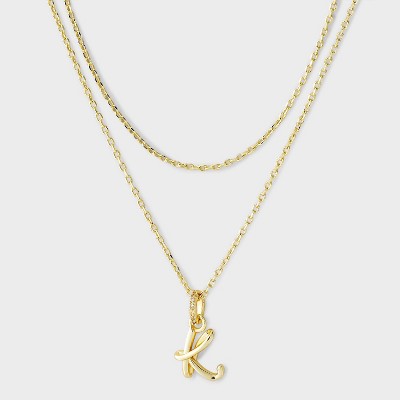 14k Gold Dipped Twist Initial Cubic Zirconia Bail Multi-Strand Necklace - A New Day™ Gold