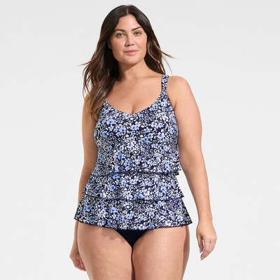 Lands' End Women's Smoothing Control Ruffle Fauxkini One Piece Swimsuit