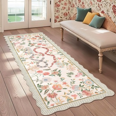 Washable Area Rug for Living Room Modern Floral Print Bedroom Rug