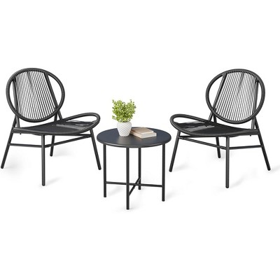 Dexmalle Set of 2 Patio PE Rattan Chairs with Side Table Set
