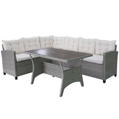 A: Most sets include a mix of seating and tables, such as sofas, chairs, coffee tables, or dining tables. Some collections also feature specialty pieces like loungers or fire pit tables.