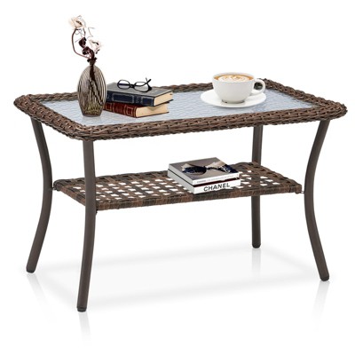 Transform your outdoor space with stylish patio tables to create a relaxing retreat at home. From a farmhouse-style patio dining table with chairs & benches to a wicker side table to pair with your outdoor sofa, Target has you covered with the right outdoor furniture for your alfresco oasis. Make room for outdoor entertaining or coffee chats in your backyard or outdoor deck with a patio dining table or a coffee table paired with comfy seating. A bistro-style table or a patio accent table helps give your space an instant upgrade if you’re looking for a refresh. Going for a more playful & relaxed look? Complete your setup with a round or square patio table with an umbrella hole that helps create a shady spot for all-day brunches & summer soirées. Lightweight & rust-resistant, powder-coated metal frames help resist the element so your furniture keeps looking its best through the seasons.