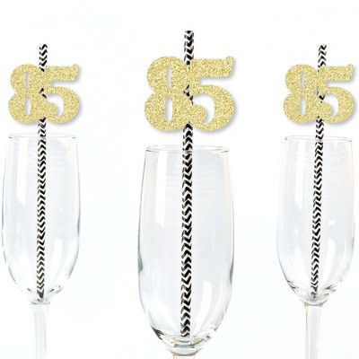 Big Dot of Happiness Gold Glitter 85 Party Straws - No-Mess Real Gold Glitter Cut-Out Numbers & Decorative 85th Birthday Party Paper Straws - 24 Ct