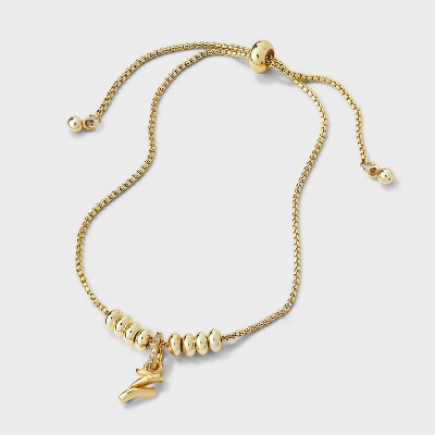 14k Gold Dipped Letter Twist Initial with Cubic Zirconia Bail Bolo Bracelet - A New Day™ Gold