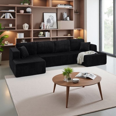 132.48" Corduroy U-Shaped Modular Sectional Sofa, Minimalist Style
