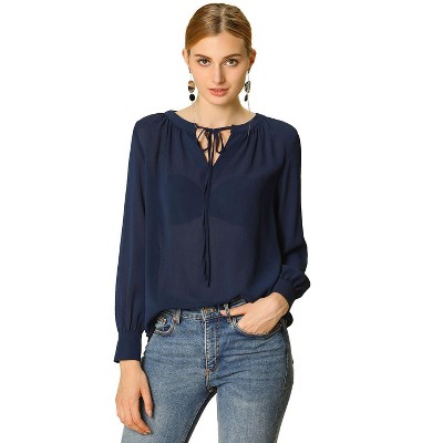 Layer your long sleeve blouse under a tailored blazer or cozy knit during colder months.
