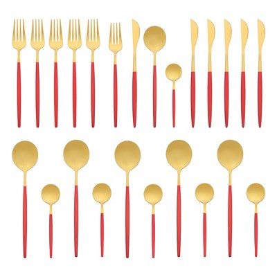 The perfect silverware elevates everyday meals into a fine dining experience. At Target, find a wide range of silverware sets to choose from. Look through a variety of silverware sets that are made of sturdy stainless steel with a smooth finish, these silverware work well in both formal and informal settings. Complete with dinner knives, dinner spoons, teaspoons, salad fork, fork tines, soup spoon, dinner forks and salad/dessert forks, these silverware sets are sure to blend in with your table setting. Ideal for families, entertaining and parties, each piece of silverware is dishwasher safe for lasting shine through many uses. Find silverware sets with an eye-catching gold finish that will instantly elevate your table setting. Browse through a large collection of silverware sets and find the perfect one for you.