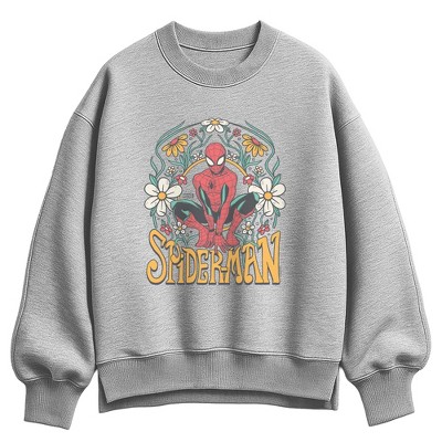 Women's - Marvel - Spider-Man Florals Oversized Fleece Crew Sweatshirt