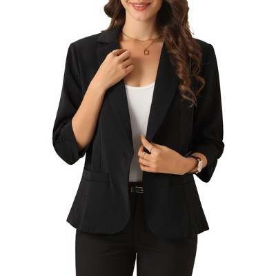 INSPIRE CHIC Women's 3/4 Sleeve Lapel Collar One Button Side Pockets Blazer